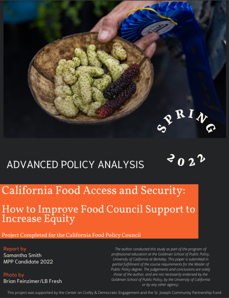 | 2022 | California Food Access and Security: How to Improve Food Council Support to Increase Equity (Samantha Smith) |